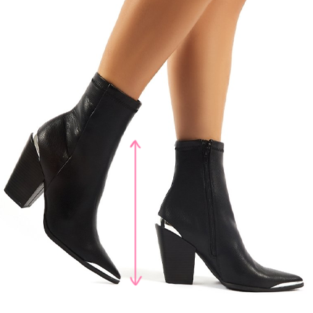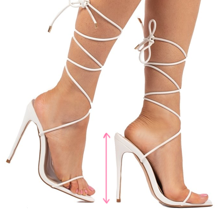 Heel heights are measured from the high point where the heel joins the shoe, right to the floor.
